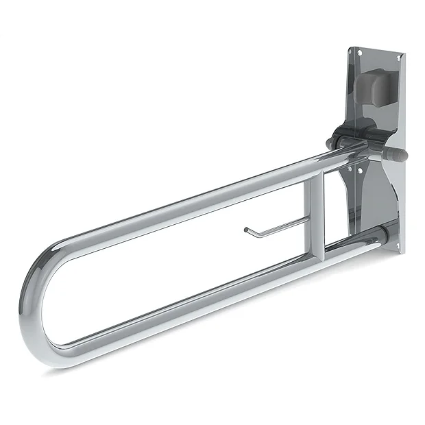 This AKW Fold-Up Double Support Rail in Stainless Steel is ideal where space is limited and folds up when not in use. Providing support in multi-user bathrooms, the rail folds up when not in use and has an integrated toilet roll holder.