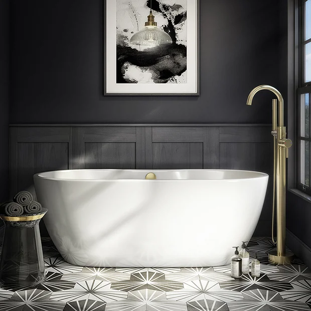 Amp up the luxury in your bathroom with this striking Arezzo Freestanding Bath Tap with Shower Mixer. Standing 1140mm high, it towers elegantly above your tub offering you two options for flow – a tastefully curved spout and a handheld detachable shower head, both in stunning matt effect brushed brass. The innovative aerated spout creates a smooth jet while simultaneously saving on water and a simple single lever controls the temperature and water flow. This sophisticated solid brass mixer tap will pair well with a freestanding bath from the Chatsworth or Trafalgar ranges.