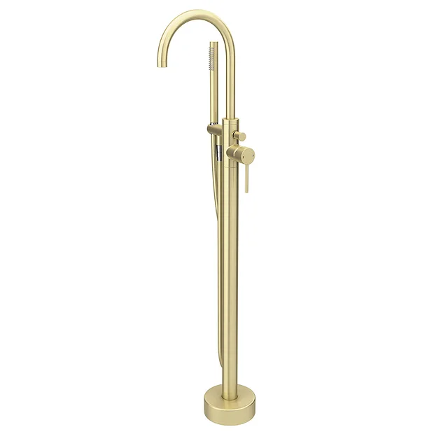 Arezzo Brushed Brass Freestanding Bath Tap with Shower Mixer