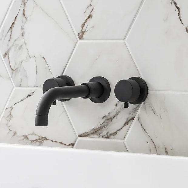 Add a splash of modernist style to your bathroom with this premium quality Arezzo Round Wall Mounted Bath Filler Tap. Characterised by a gentle downward curve that projects 189mm, the spout is smooth to touch and boasts matching circular lever tap heads that control water flow and temperature. Expertly manufactured from hardwearing brass, this designer bath filler tap effortlessly withstands the rigours of daily use. A black matt finish creates a sleek look for a striking contrast against traditional white fixtures and fittings.
