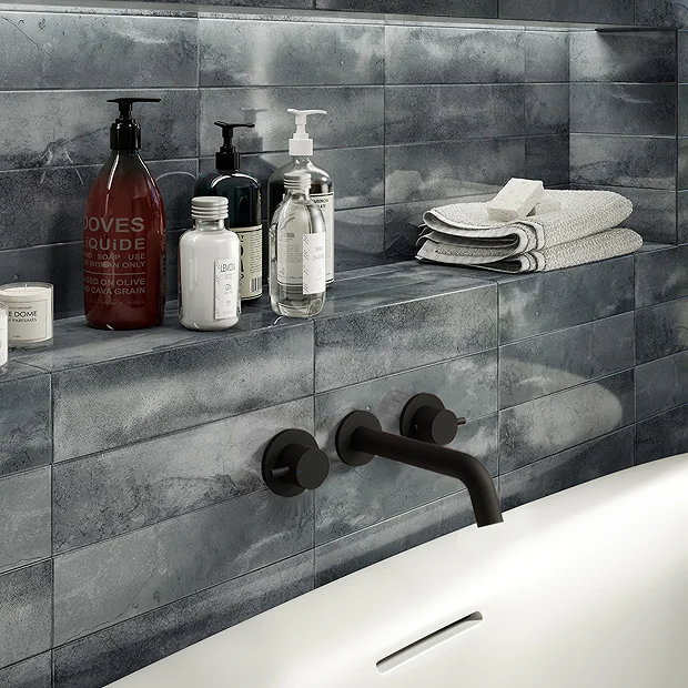 Arezzo Round Matt Black Wall Mounted (3TH) Bath Filler Tap