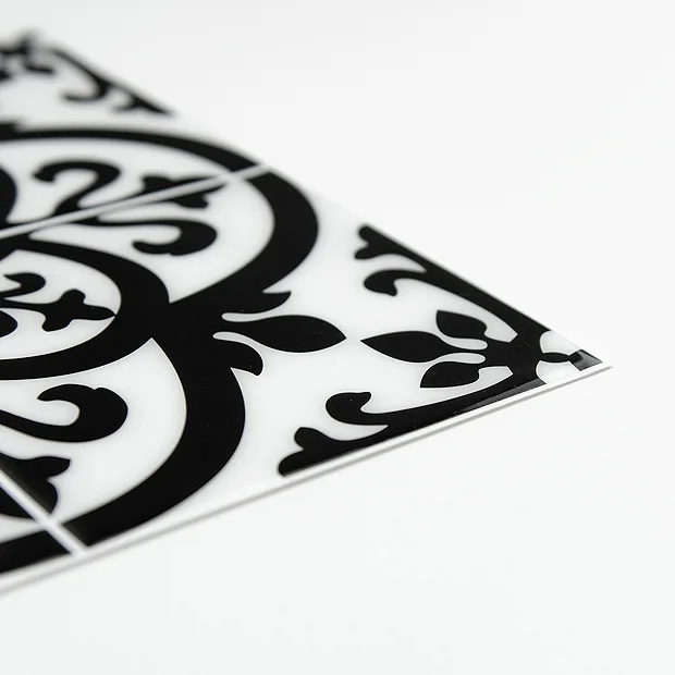 - Has the look of black and white tile with gothic motifs Perfect for creating a backsplash