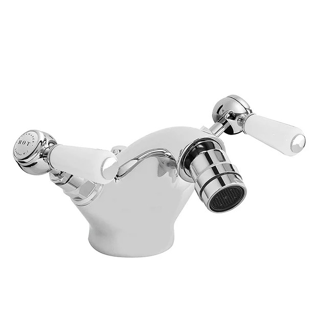 Beautifully crafted and inspired by Victorian and Edwardian designs, the Bayswater White Lever Mono Bidet Mixer is the perfect upgrade for the traditional bathroom. It’s elegant white ceramic lever handles and matching indices adds to the timeless look. Made from high grade brass with a durable chrome finish. Supplied with pop-up waste.