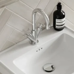 Inspired by the Art Deco and Style Moderne designs of the 1920s, Burlington Riviera brassware have bodies and spouts in the form of perfect cylinders. This elegant mono basin mixer has a high swivel spout mounted on the main body, finished off with stylish faceted handles.