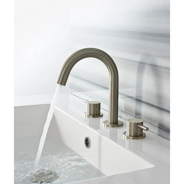 The MPRO Collection delivers on function, style and quality for a look that encapsulates a modern elegance that’s second to none. This stunning deck mounted 3 hole basin mixer features a twin lever design with a ceramic disc cartridge and is fitted with a water flow regulator as standard that makes it water efficient. Manufactured from brass and finished in an exquisite brushed stainless steel effect finish.