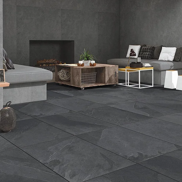 Durable with a good slip resistance, the Grado Black Outdoor Stone Effect Floor Tile is great for transforming your outdoor space. Made from 20mm thick porcelain, these extra thick tiles are ideal for installation on any outdoor areas such as gardens, terraces and patios.Â