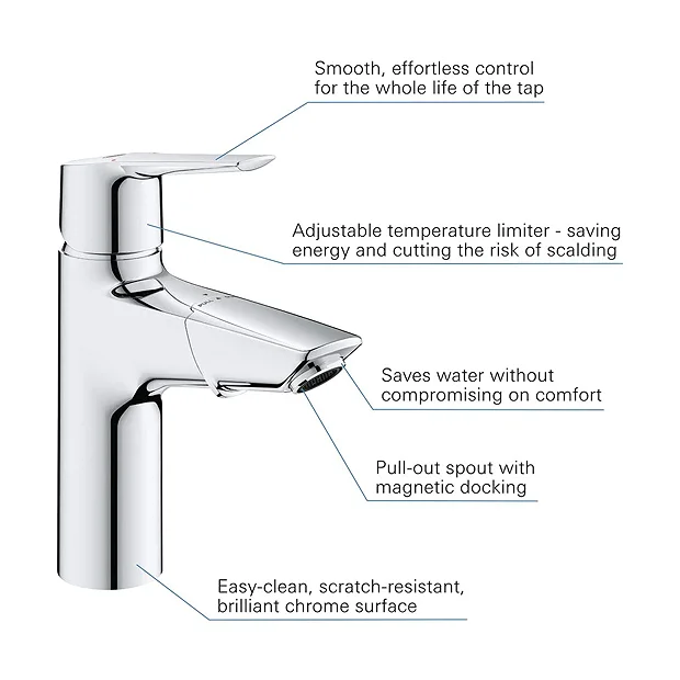 Grohe QuickFix Start Mono Basin Mixer with Pull Out Spout + Push-Open Waste – 24205003