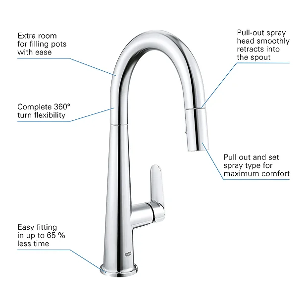 Grohe Veletto Single Lever Kitchen Sink Mixer with Pull Out Spray – Chrome – 30419000