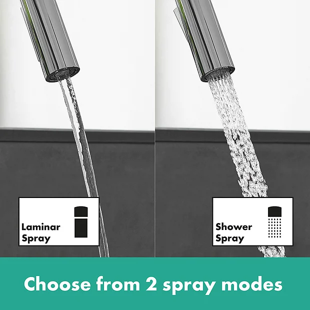 The Focus M41 Single Lever Kitchen Mixer boasts organic design with precision edges to add a touch of class to your kitchen. It features a pull out spray with 2 spray functions suitable for different uses and a QuickClean rub clean aerator that loosens any limescale deposits making sure your tap looks beautiful, and stays working for longer. The swivel spout is adjustable in 2 steps to 110° or 150°.