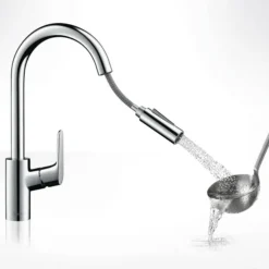 hansgrohe Focus M41 Single Lever Kitchen Mixer 240 with Pull Out Spray – Stainless Steel – 31815800
