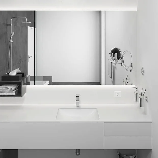 A pack of 6 x basin mixer taps for large or commercial projects. The geometric Vernis Shape variant, with its precise edges, stands for a visually striking look. This single lever basin mixer offers an economical way of adding designer elegance to your bathroom. AirPower technology adds generous amounts of air to the water, creating a soft, splash-free spray while EcoSmart technology reduces the flow rate to save water and energy.