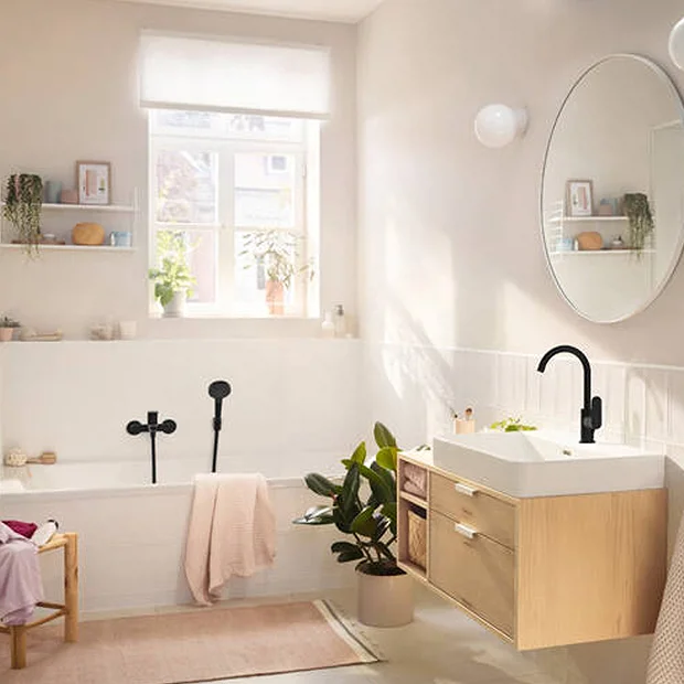 The harmonious design of Rebris S , with its gentle curves, has a modern and elegant look. The single lever basin mixer features a swivel spout that can be adjusted in 2 steps 120° or 360° and comes supplied with a pop-up waste. EcoSmart technology reduces the flow rate to save water and energy.