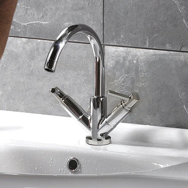 - Hot tap turns clockwise to open / Cold tap turns anti-clockwise to open