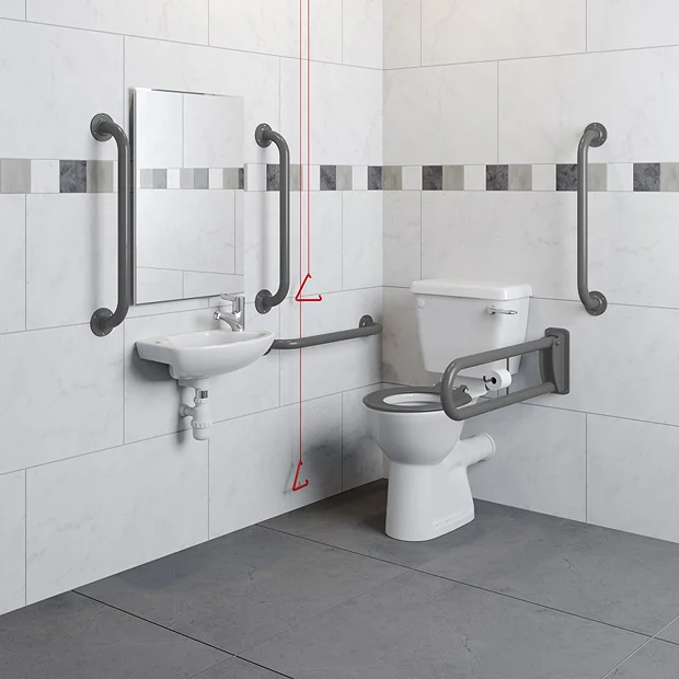 Milton Doc M Pack – Accessible Bathroom Toilet, Basin + Grey Grab Rails