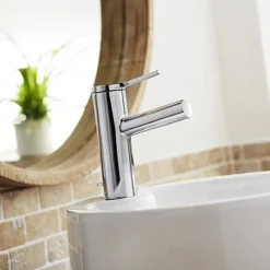Visually stunning with its geometric lines and minimalist look, the Evolve monobloc basin mixer is a stunning tap for the modern bathroom. Crafted from high quality materials and plated in polished chrome for a contemporary finish. Comes supplied with a pop-up waste.