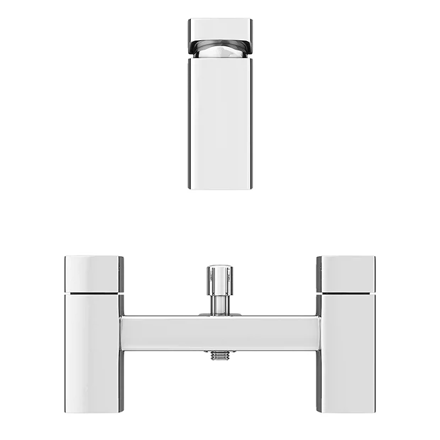 Choose these Neo Minimalist Basin and Bath Shower Mixer Taps, complete with detachable shower head, to give your bathroom ultra modern appeal. This bath and basin tap set is manufactured from hardwearing solid brass with a shiny metal plating. The chrome mixer taps boast a sleek rectangular design with rounded corners and ergonomic lever handles. Ideal for two tap hole baths, the 110mm high bath mixer has separate controls for the hot and cold water. Meanwhile, the 143mm tall basin tap features a highly practical single lever and comes with hot and cold indicators for a refined touch.