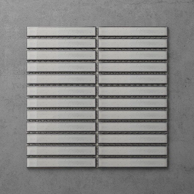 Otsu Concave Kit-Kat Mosaic Tile Sheet Gloss Grey Speckled – 295 x 295mm