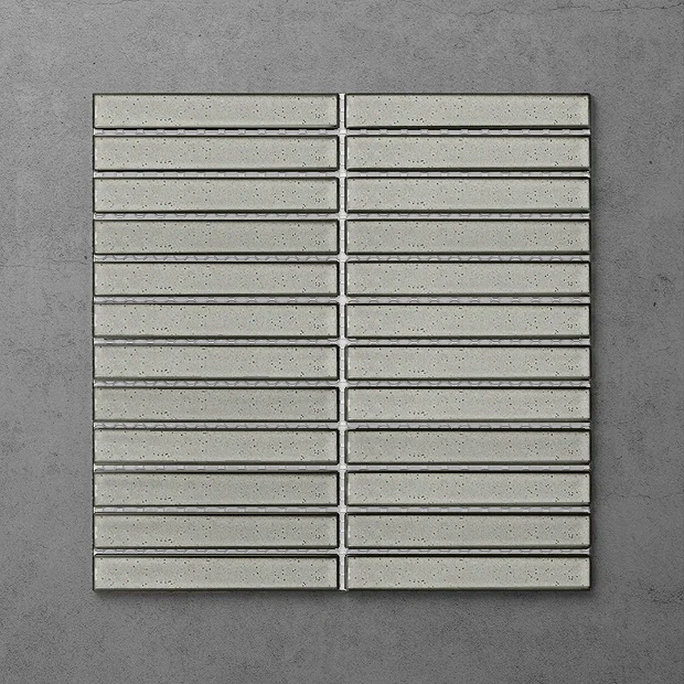 Otsu Concave Kit-Kat Mosaic Tile Sheet Gloss Light Grey Speckled – 295 x 295mm