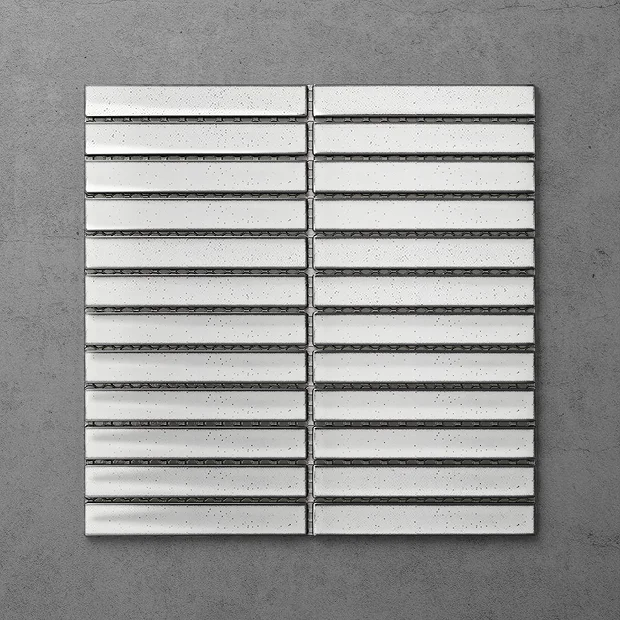 Otsu Concave Kit-Kat Mosaic Tile Sheet Gloss White Speckled – 295 x 295mm