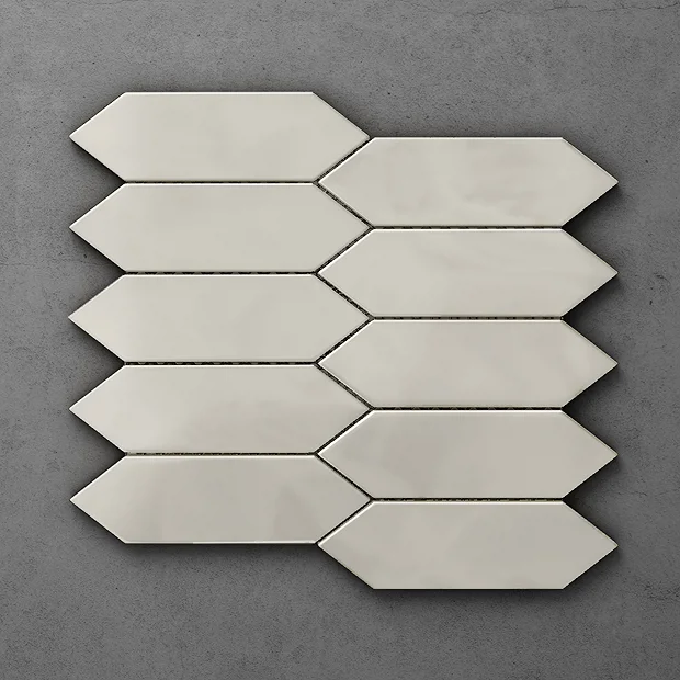 This stylish range of Otsu tiles features elongated hexagon shaped wall tiles in eye catching designs. These gloss grey tiles have a subtle rippled finish which give them a timeless and beautiful look.
