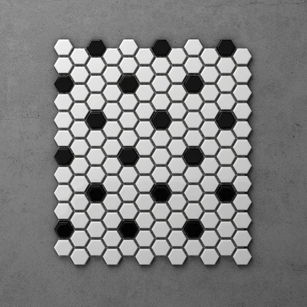 Add character to your kitchen or bathroom with Otsu Hexagon Mosaic Tiles. It’s contemporary design can be used on walls or floors. Manufactured using high grade durable porcelain, these stylish tiles will make any wall or floor eye-catching.