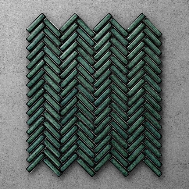 Otsu Mini Herringbone Mosaic Tile Sheet Gloss Green – 306 x 290mm