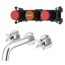 The contemporary Pablo crosshead 3TH wall mounted basin mixer tap, manufactured from brass with a stunning chrome finish. The Pablo range is characterised by it’s stylish curved spout and sleek minimalist crosshead handles.