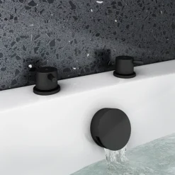 Arezzo Matt Black Deck Bath Side Valves With Freeflow Bath Filler