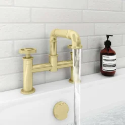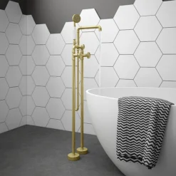 Arezzo Brushed Brass Industrial Style Freestanding Bath Shower Mixer Tap