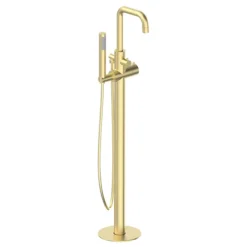 Arezzo Round Thermostatic Floor Mounted Freestanding Bath Shower Mixer Brushed Brass