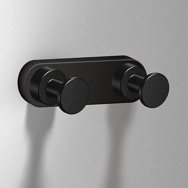 This Venice Black Double Hook is perfect for achieving a modern on-trend look. It features a minimalist design which integrates seamlessly into any modern bathroom scheme. Constructed from brass and features concealed fixings. Suitable for domestic and commercial installations.