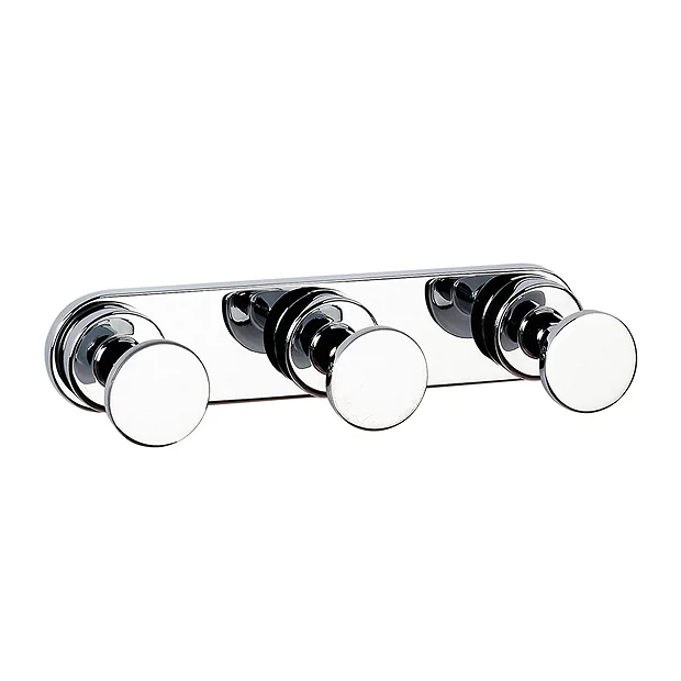 The stylish range of Venice Chrome accessories will blend in seamlessly into any bathroom interior. This triple robe hook is constructed from brass and features concealed fixings. Suitable for domestic and commercial installations.